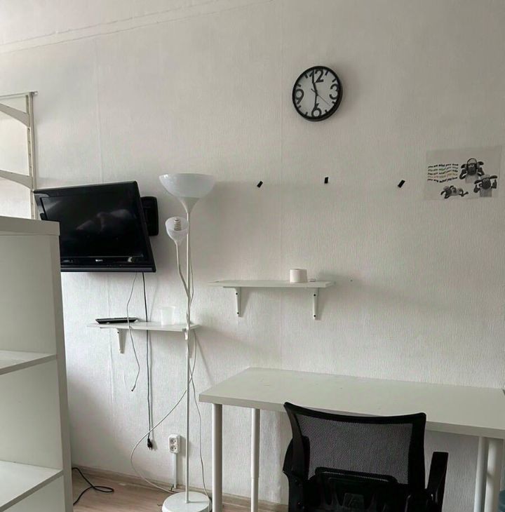 В комнате есть интернет, телевизор, электрочайник, микроволновка, рабочий стол и кресло, сделана шумоизоляция.