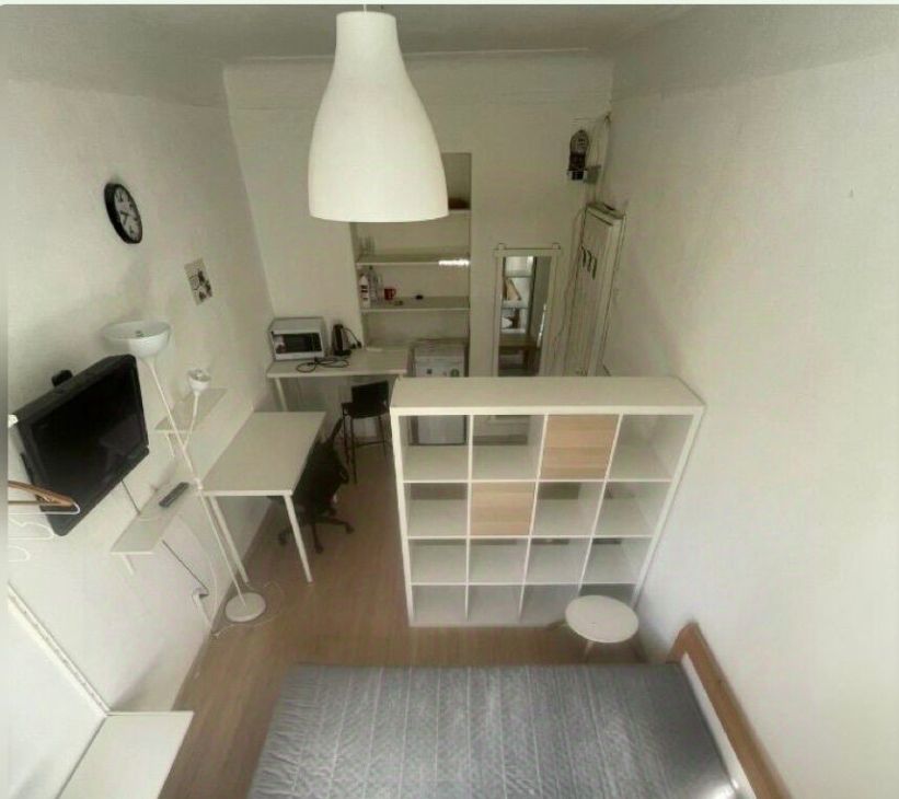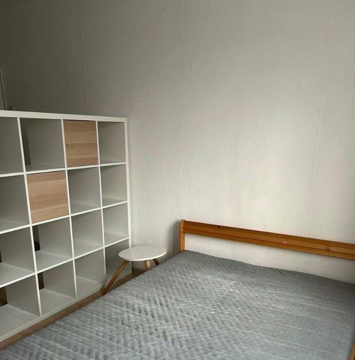 Комната очень светлая и уютная! Места общего пользования в хорошем состоянии. Санузел отдельный, душевая кабина на кухне. На кухне стол с рабочей зоной, полка для посуды и общая стиральная машина. Соседи: женщина и молодой человек (лет 30).