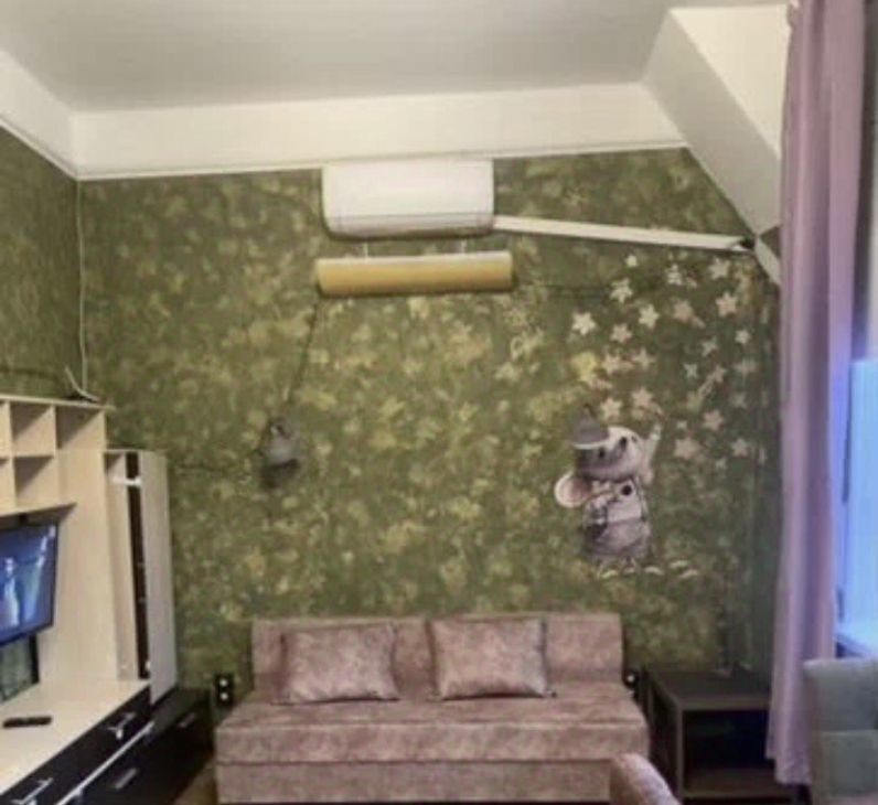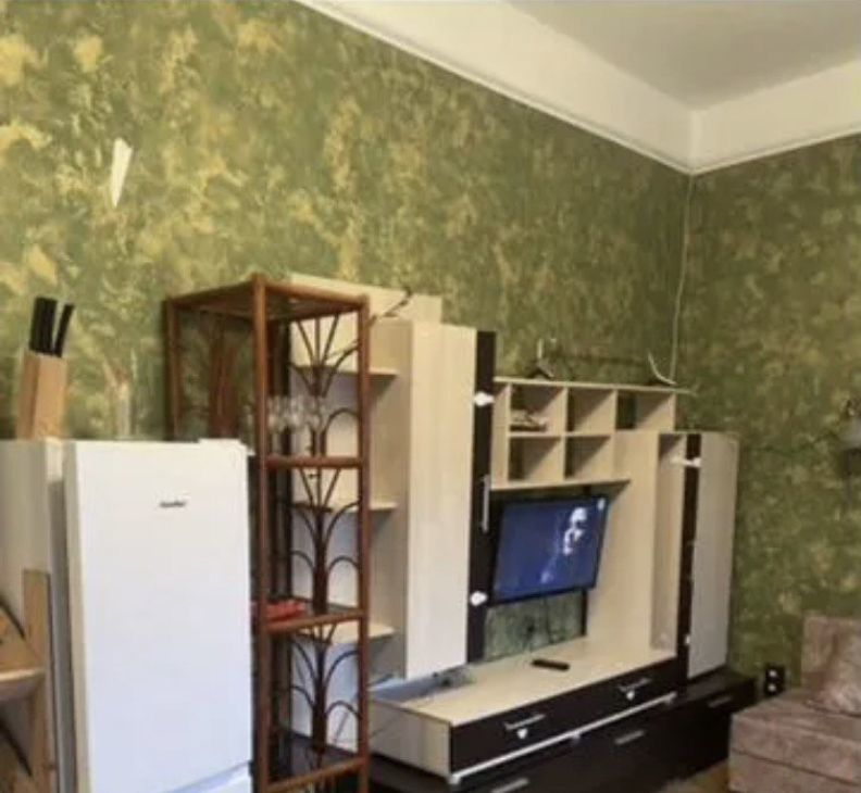В комнате новый раскладной диван, новый холодильник, новая стиральная машина. 2 шкафа- купе, кондиционер, телевизор, стол, стулья, стенка, стойка.