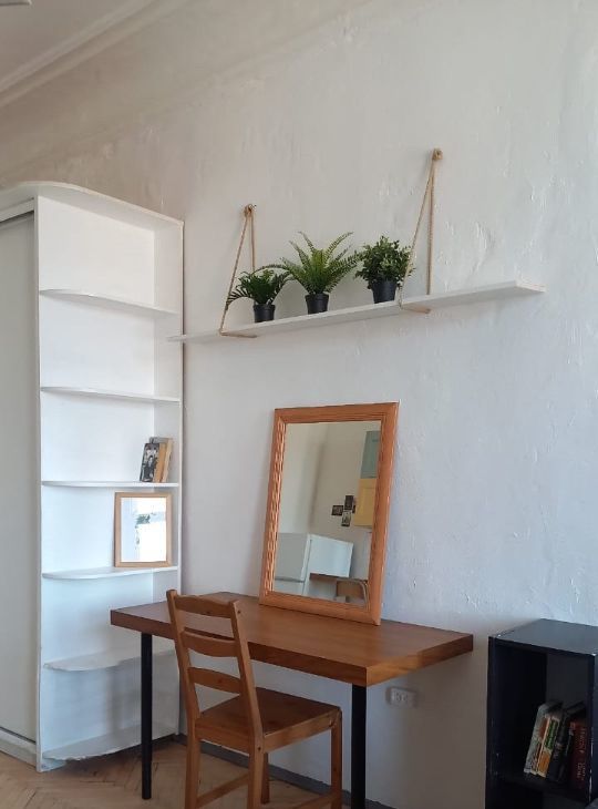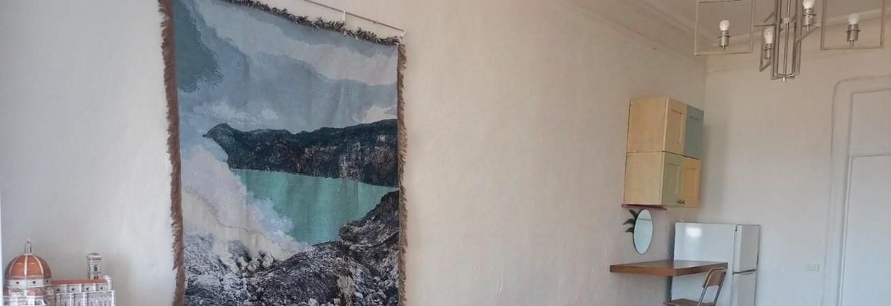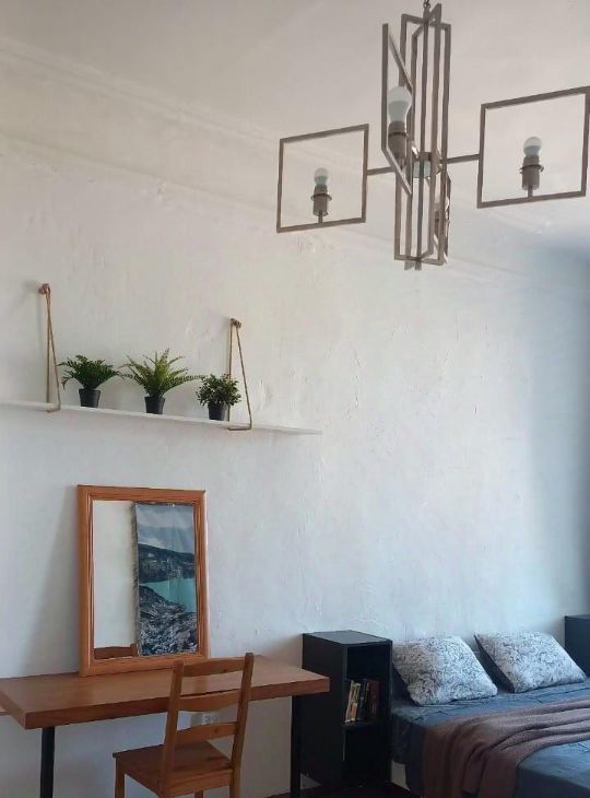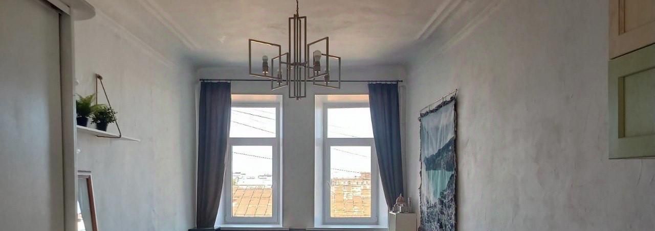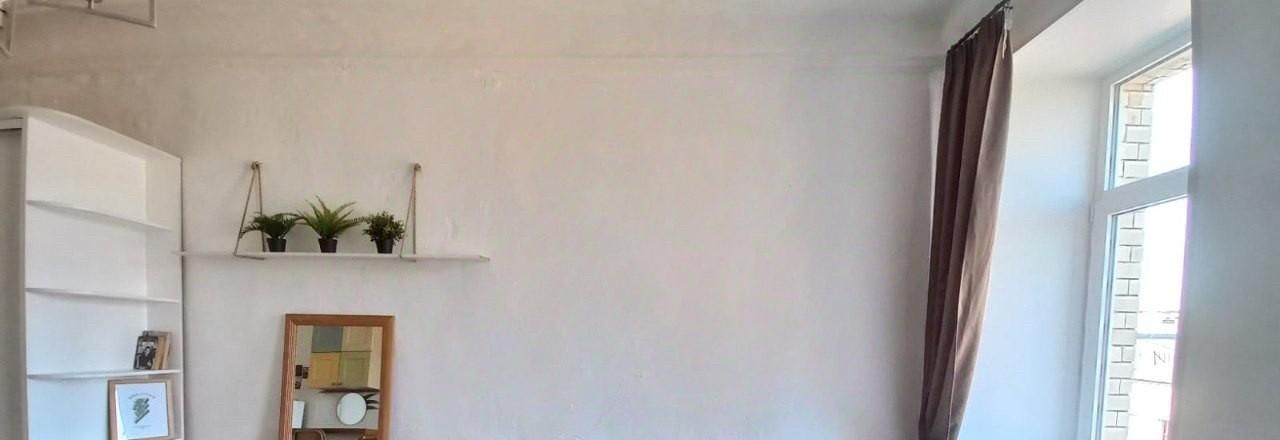 Просторная видовая светлая и тихая комната — с окнами на небо и крыши, соседи только с одной стороны. Качественный ремонт, высокие потолки, натуральные материалы.
