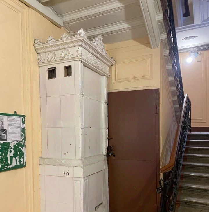 удобное расположение от входа, лифт OTIS, красивая парадная со старинной печью.