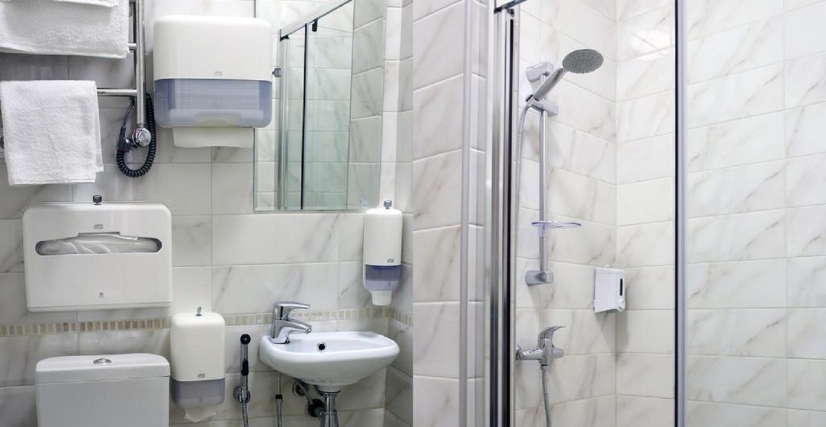 Имеется несколько душевых и туалетов на этаже, никаких очередей в туалет, как в коммуналках.