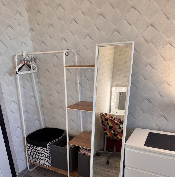 Есть всё для комфортного проживания, оборудованная кухня, холодильник, стиральная машина, интернет. Так же в квартире есть место для хранения крупногабаритных вещей, что является большим плюсом.