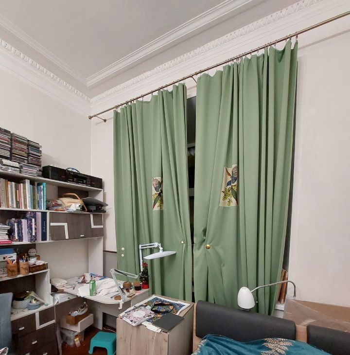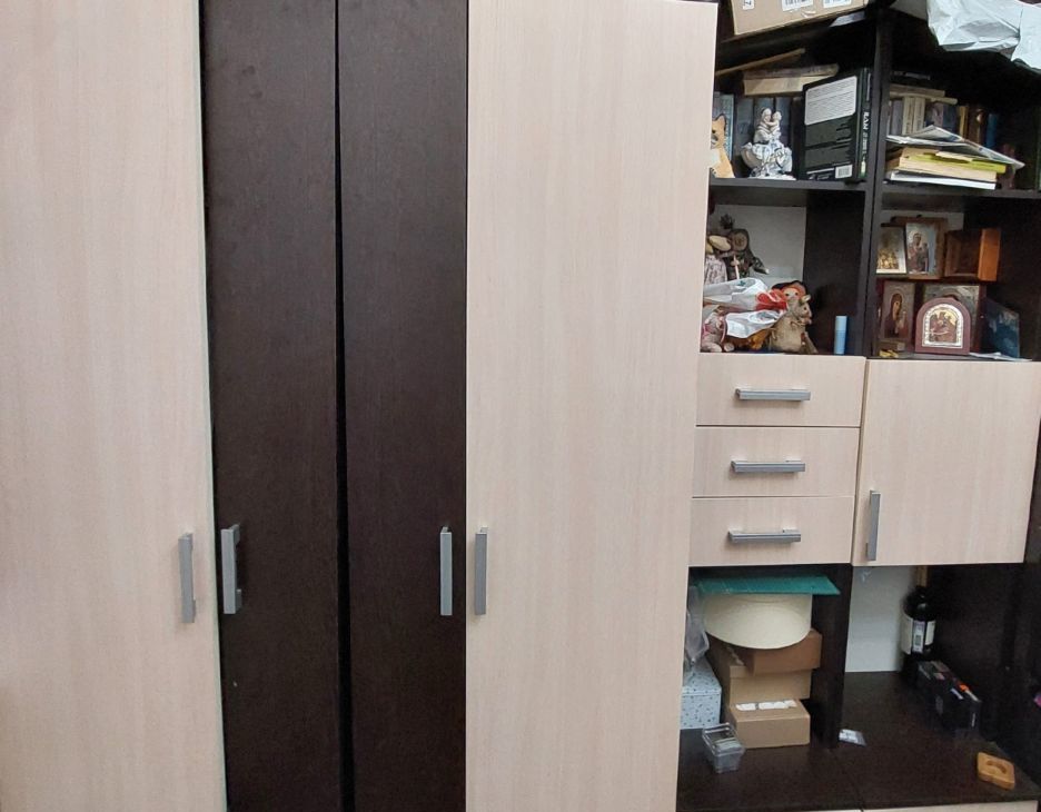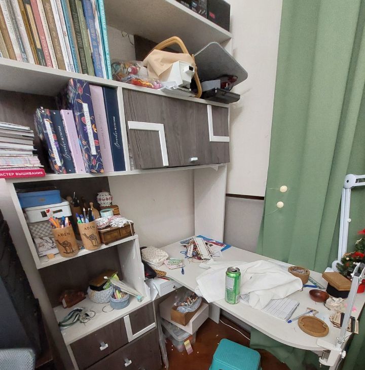 Комната правильной квадратной формы. Расположена на 2м этаже. Окно выходит в тихий проходной двор. В квартире тепло. Окно поменяешь на стеклопакет. В комнате остаётся мебель:2шкафа для одежды, 2 пенала для хранения документов, книг, угловой стол для компьютера с шкафчиками, техна 140 на220, стол обеденный, 70на 80, раскладывается до размеров 80на140, буфет, холодильник, Стир. машина, шкафчик в ванной комнате, буфет на кухне. при желании посуда и постельное белье.