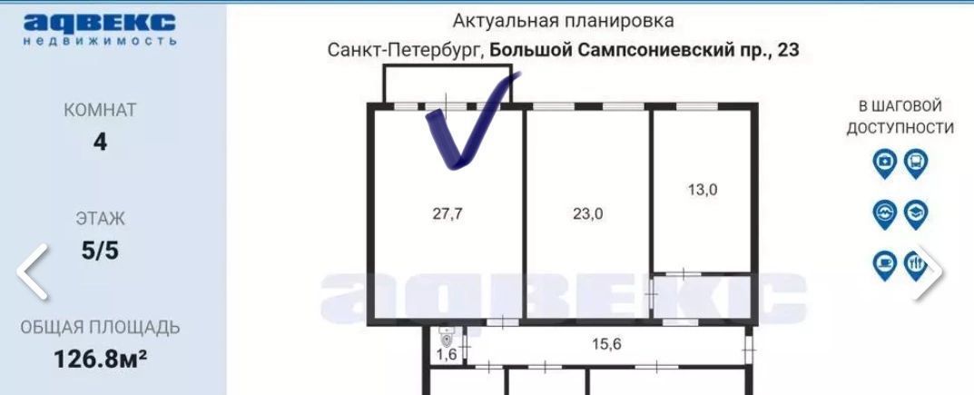 Комната Санкт-Петербург Большой Сампсониевский просп., 23 (27.7 м²)