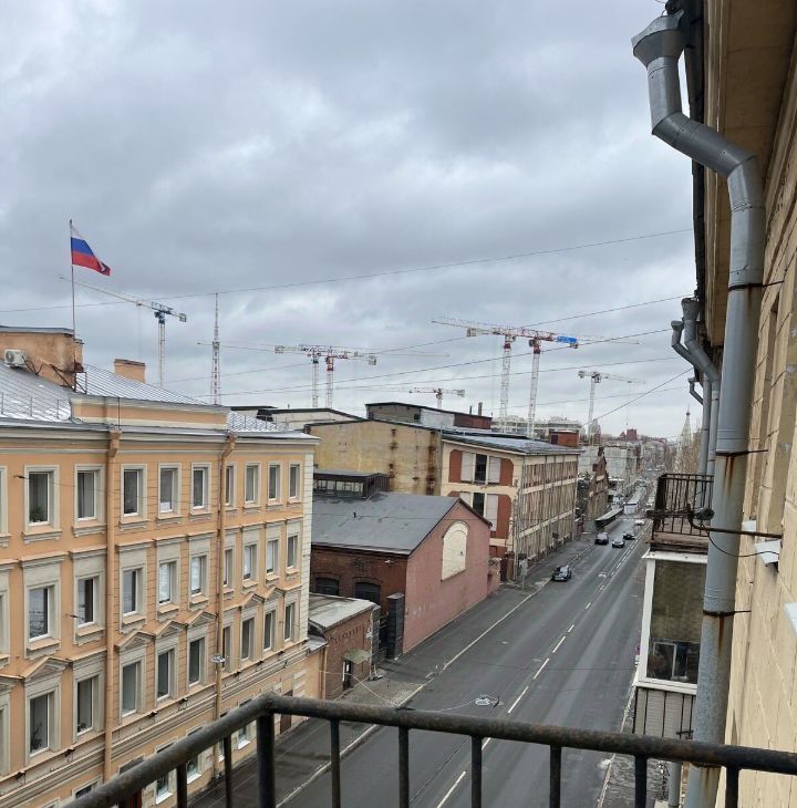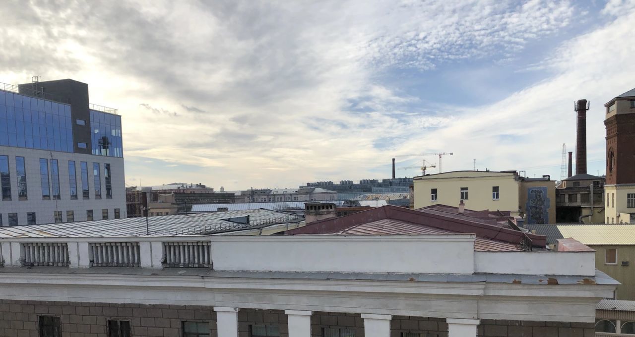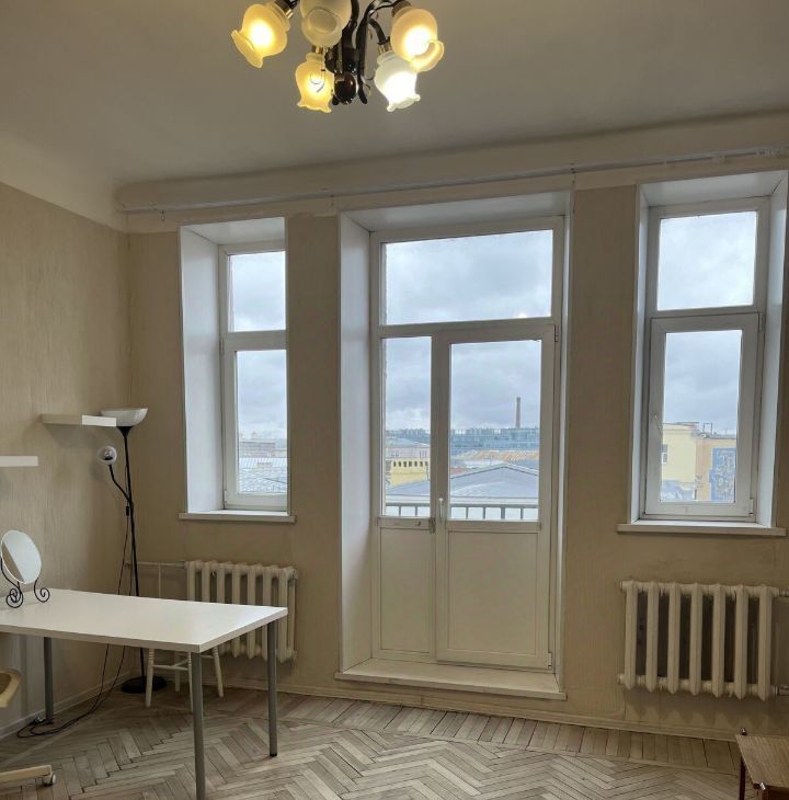 Окно во всю стену имеет выход на собственный балкон с видом на красивые крыши Выборгской Стороны, небо и салюты в дни городских праздников.