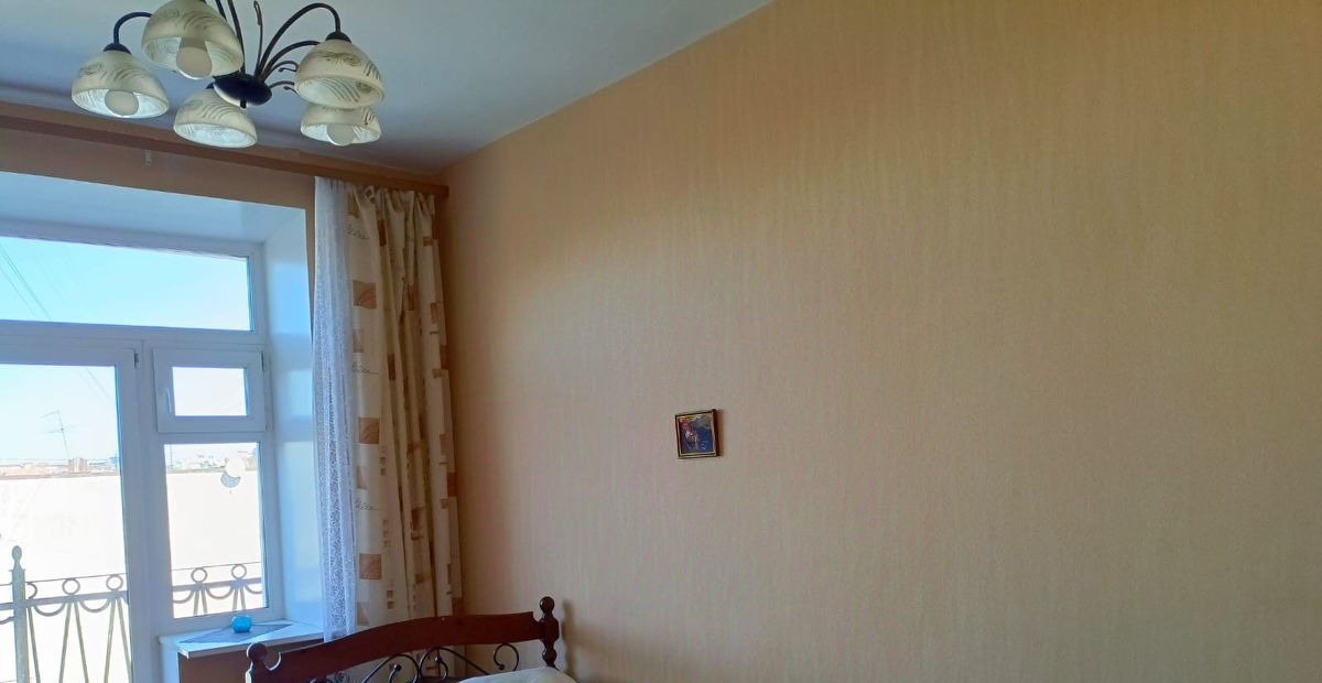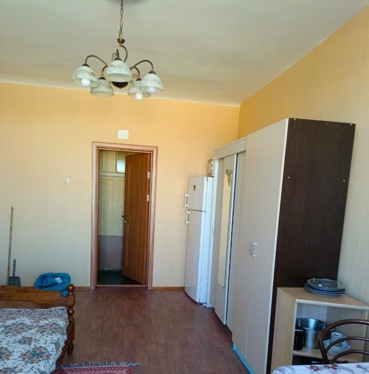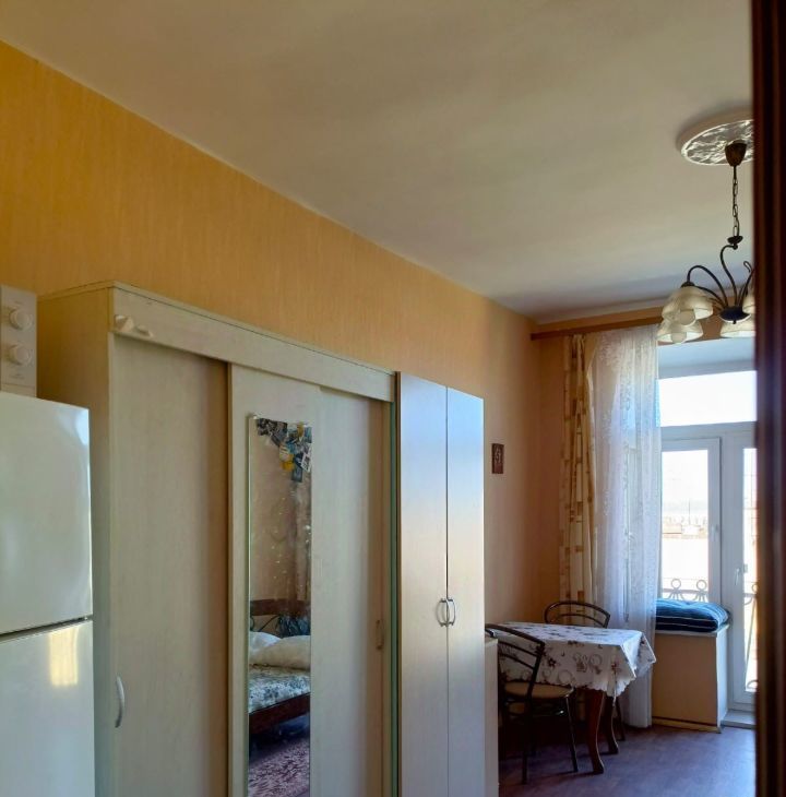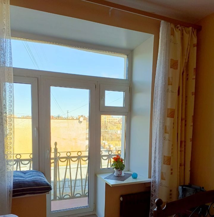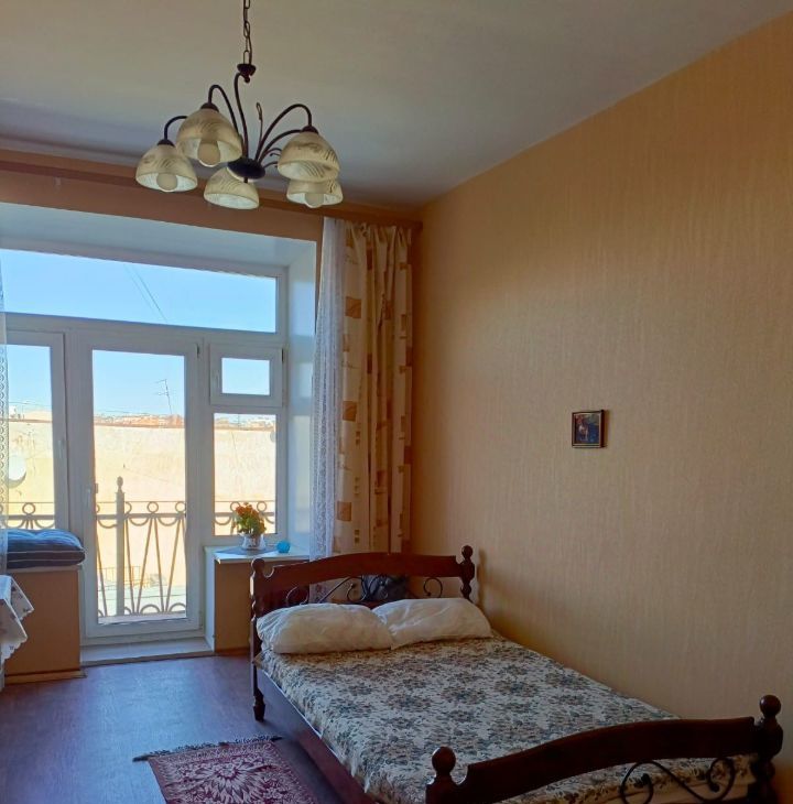 В комнате выполнен качественный капитальный ремонт: заменена электропроводка, сделана шумоизоляция, выровнен пол, уложен хороший линолеум, поклеены свежие обои и покрашен потолок. Есть балкон с видом на городские крыши. Дом кирпичный, в хорошем состоянии. В квартире спокойные соседи.