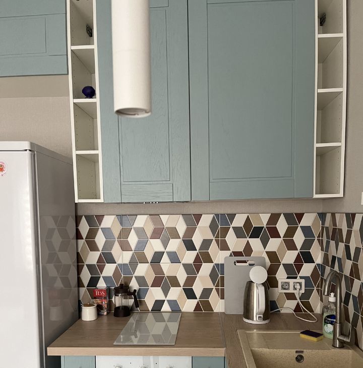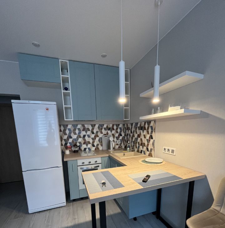 Оборудована кухонная зона с встроенной плитой. Есть холодильник. Новая посуда. Чай, кофе, печеньки :)