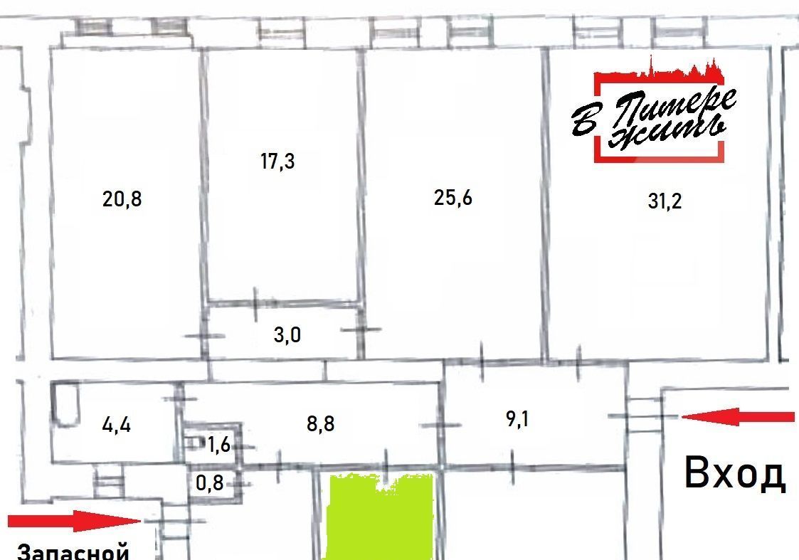 Сдается на длительный срок комната в Петроградском р-не Санкт-Петербурга 11,5 кв.м.