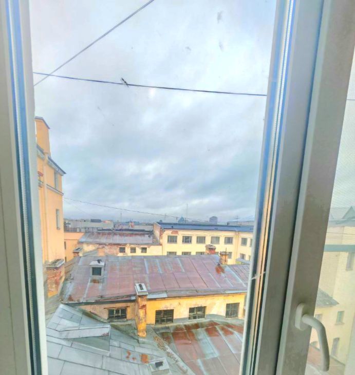 Приглашаем поселиться в комнате нестандартной планировки в историческом здании в тихом центре Петербурга (в одном квартале от Летнего сада, неподалёку от Литейного проспекта; ходят автобусы). Вид на крыши. В квартире два дружелюбных соседа.