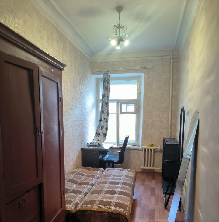 комната в 4-х комнатной малонаселённой квартире , которая находиться на 4-ом этаже многоквартирного жилого дома с закрытой территорией, который расположен в историческом центре города и в шаговой доступности к 2-м станциям метро площадь Восстания и площадь Александра Невского, а также к набережной реки Невы. рядом с домом школа и два детских сада, торговыйц ТК Лента.