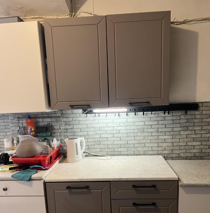 * Своё большое место на кухне. Стильный серый гарнитур