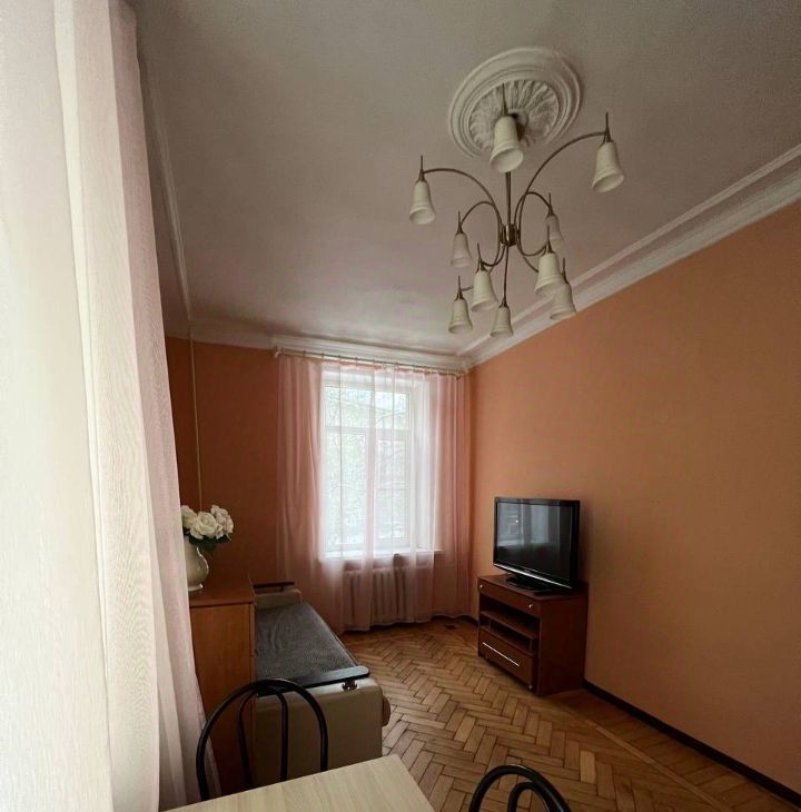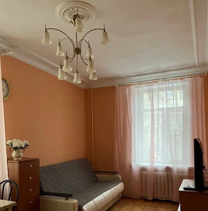Сдается хорошая светлая уютная комната с высокими потолками в трёхкомнатной квартире (есть ванна, туалет, кухня), имеется все необходимое для проживания (диван, шкаф, тв, стиральная машина, микроволновая печь, стол, стулья, напольная сушилка для белья). Комната сдаётся после ремонта и клининга.