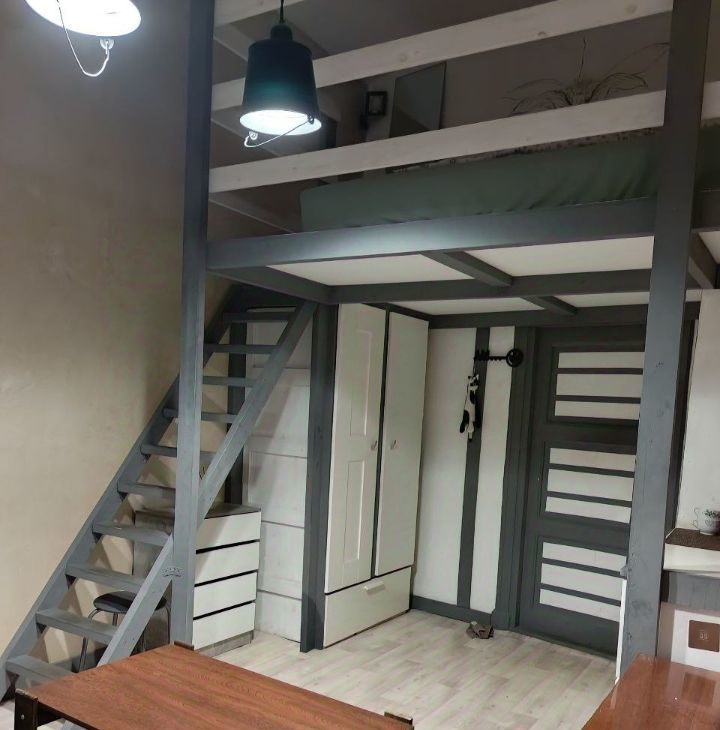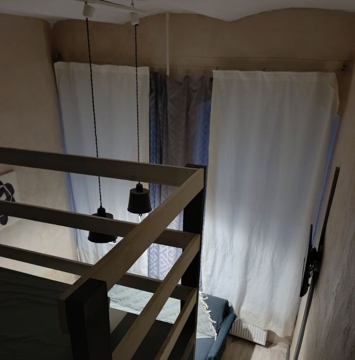 По комнате: 15кв.м, потолки 3,8м. Два яруса, большая удобная кровать наверху. Всё есть и работает, кроме Wi-Fi (можете сделать сами).
