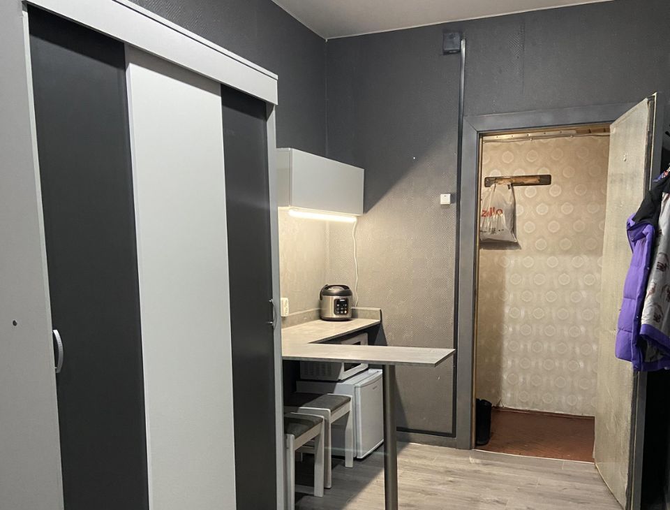 В комнате в идеальном состоянии есть : чайник электрический(новый), мультиварка, холодильник маленький, микроволновка.