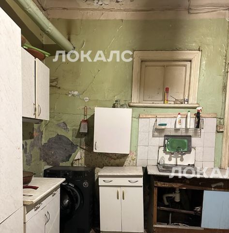 В общей зоне расположена стиральная машинка на 3 комнаты, кухонные шкафчики.