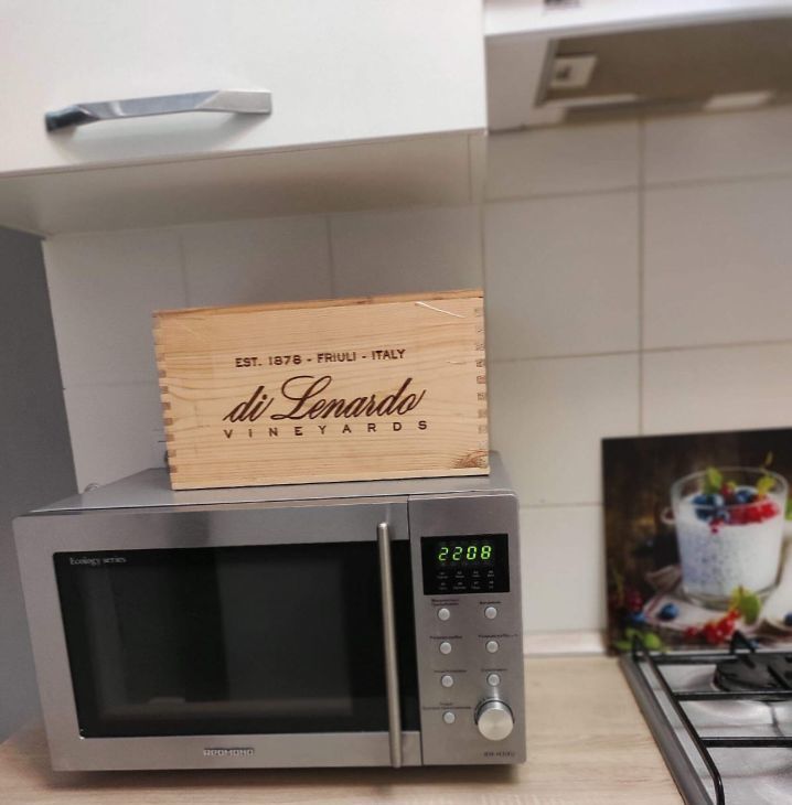 бытовая техника: холодильник, микроволновая печь, чайник, фен, водонагреватель.