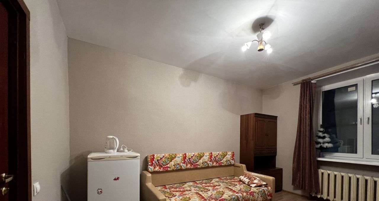 Сдаётся хорошая комната на долгий срок (от 6 месяцев) в коммунальной квартире в доме 1957 года постройки, с диваном и холодильником для одного человека.