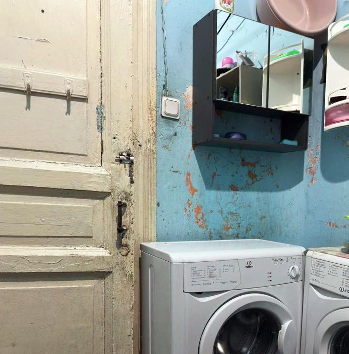 Дверь в комнату металлическая, вторая - деревянная. Санузел раздельный, туалет чистый. Ванна, стиральная машина-автомат, свой шкафчик в санузле.
