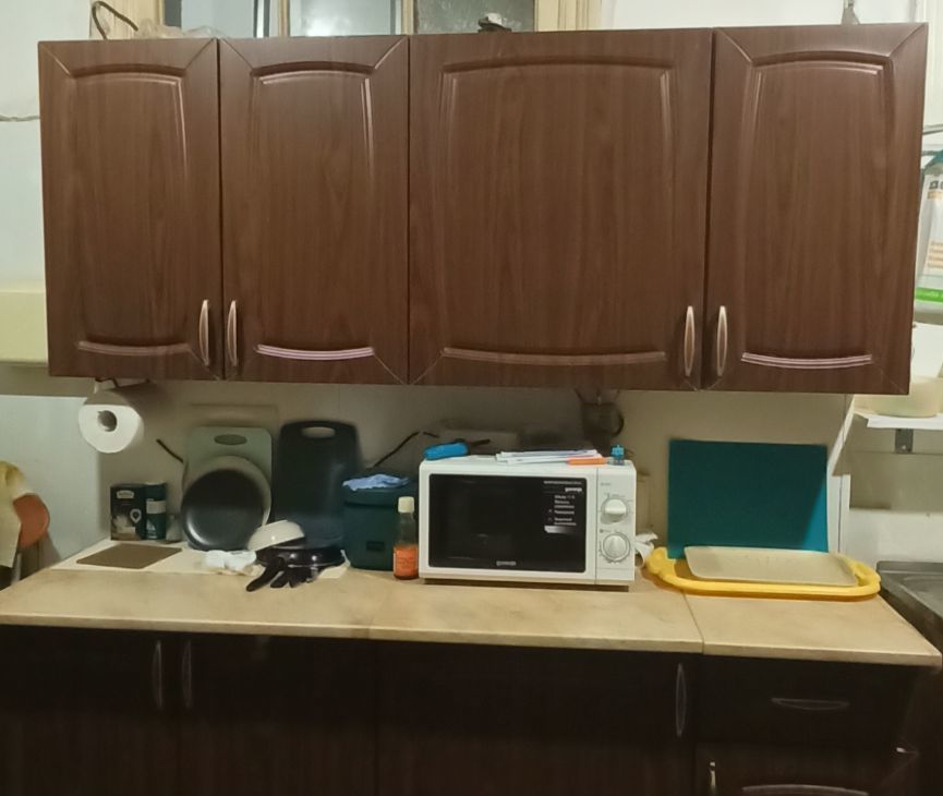В комнате есть все необходимое, спальное место, шкафы, стол, чайник, стиральная машина, холодильник.