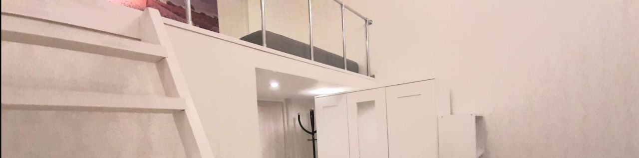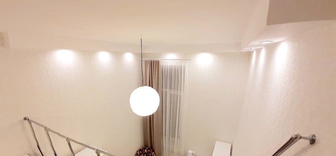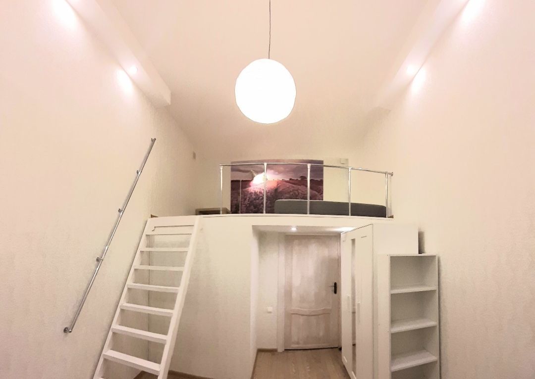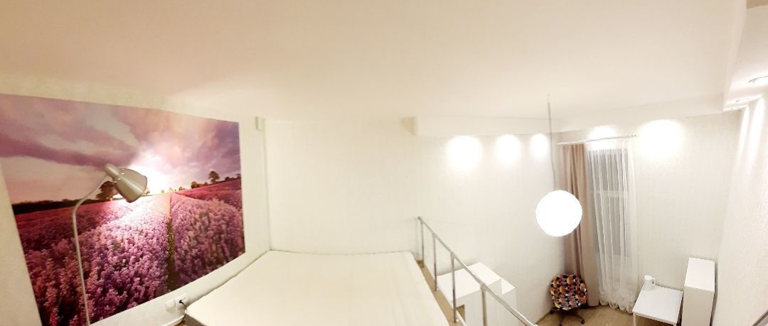 Комната 2-уровневая, 4 метра высота потолка, на втором этаже можно встать во весь рост.