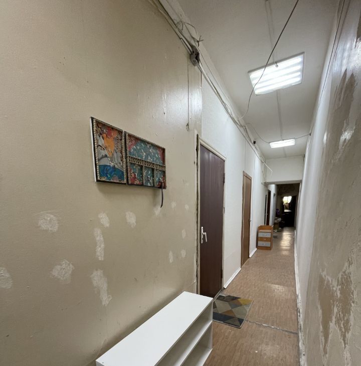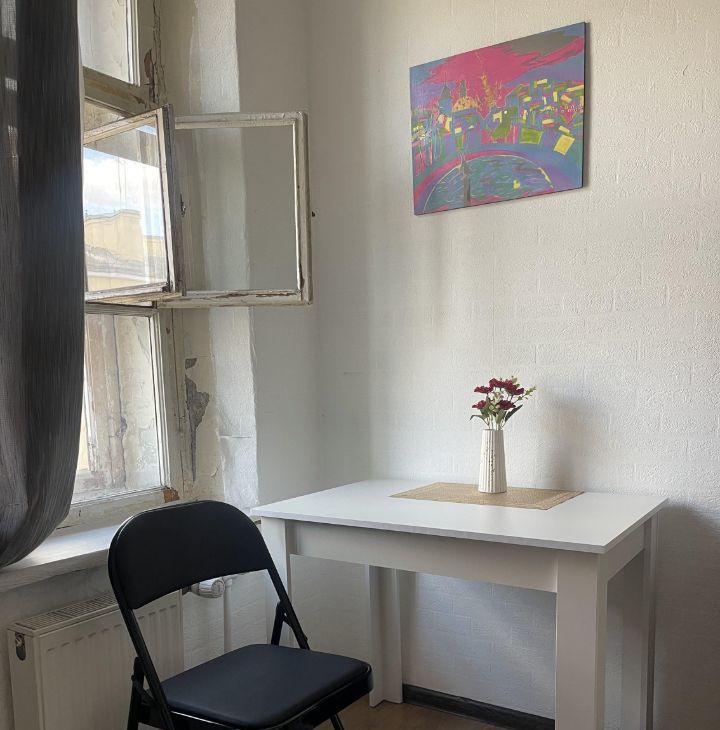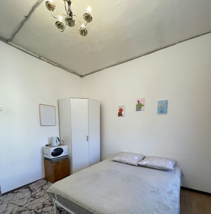 Комната располагается напротив м. Нарвская (1 минута пешком), в коммуналке на пятом этаже. Коммуналка рассчитана на 8 комнат из которых на данный момент заселены 4 комнаты. Из плюсов, своя стиральная машина,холодильник,мебель и посуда на кухне и в комнате. В самой комнате большая кровать с хорошим матрасом (ему буквально год), комод, вешалка для верхней одежды, сушилка для белья , шкаф, стол, телевизоры 2 новые подушки. В комнате так же новая проводка, пылесос, фен, утюг, чайник и микроволновая печь. На кухне свой стол, шкафчик с посудой, газовая плита и холодильник.
