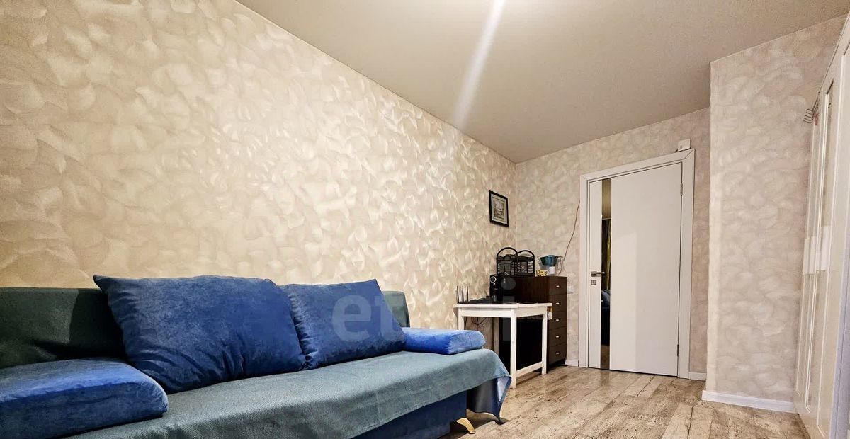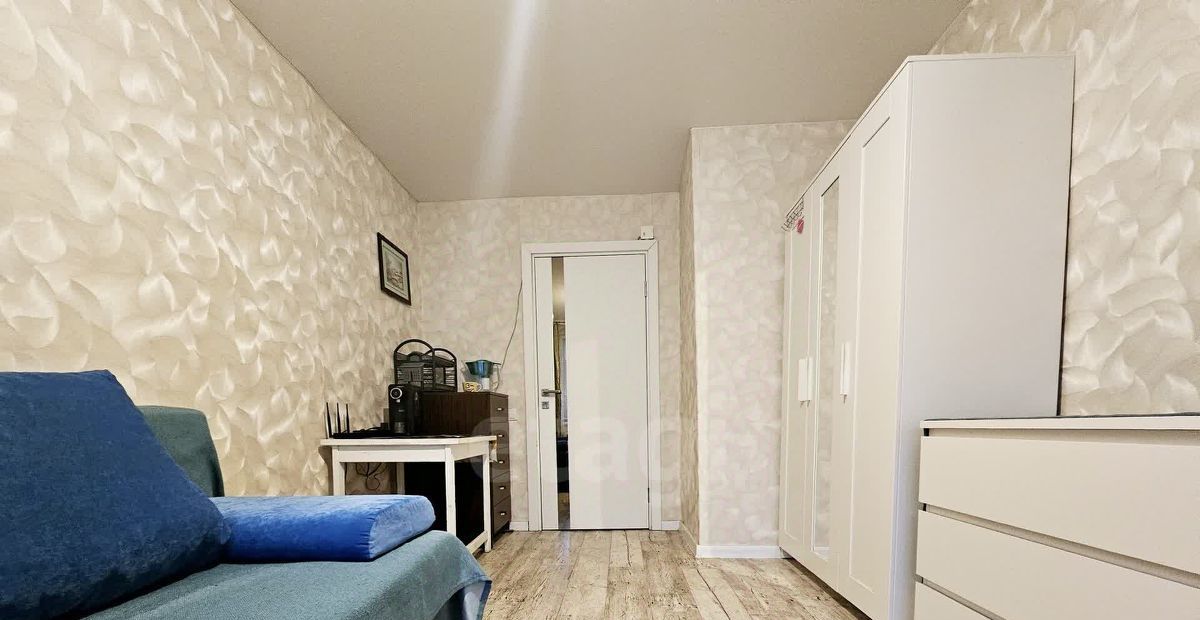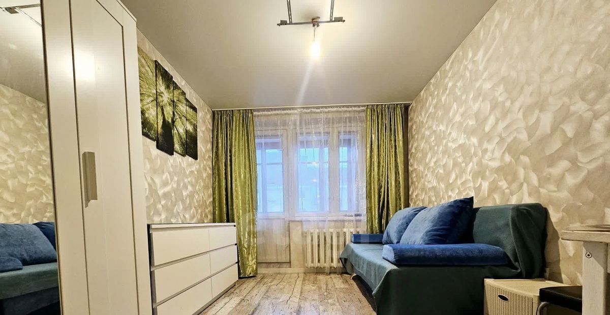 Комната светлая, чистая, в хорошем состоянии, с аккуратным современным ремонтом. На полу качественное напольное покрытие под дерево, стены оформлены в светлых спокойных тонах, за счёт чего пространство выглядит просторно и уютно.
