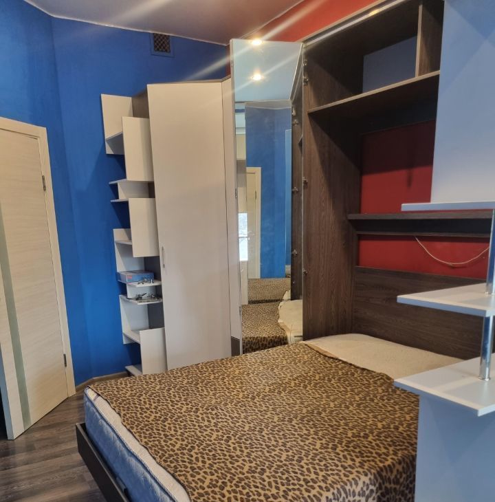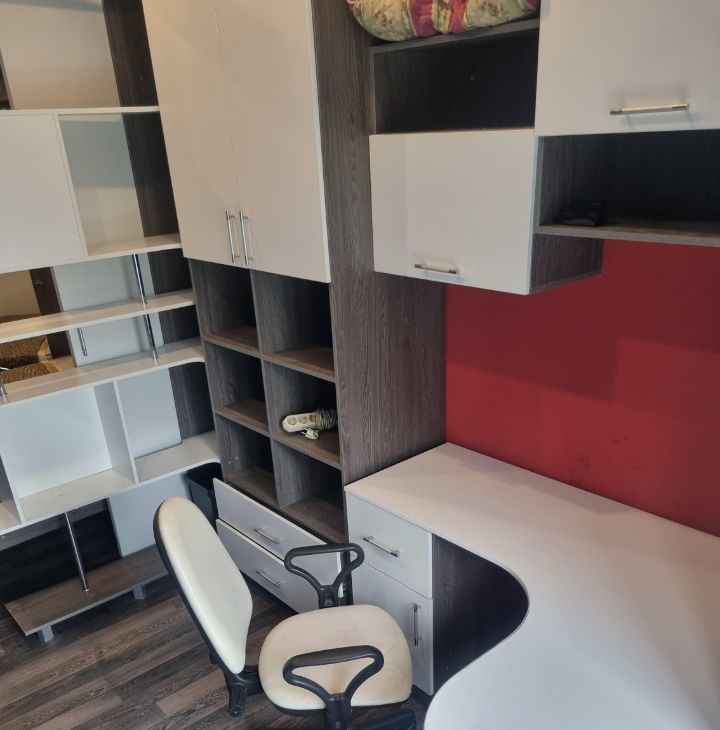 Комната светлая, с косметическим ремонтом и всей необходимой мебелью. Кровать-шкаф (трансформер, раскладывается легко, постельное убирать не нужно, оно фиксируется ремнями), новый ортопедический матрас, просторное рабочее место у окна, много мест для хранения вещей, собственный холодильник.