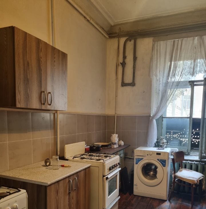 Санузел и душевая раздельные - с хорошим ремонтом. На кухне есть свой шкафчик с полками, газовая плита, стиральная машина (на 2 комнаты), микроволновка. Во дворе есть парковка.