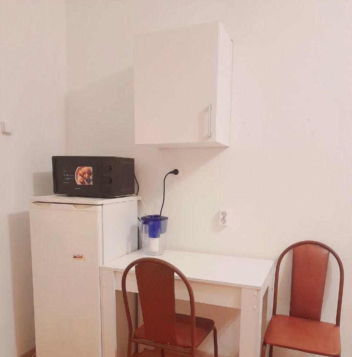 Светлая чистая комната, недавно был ремонт в комнате есть вся необходимая мебель и бытовая техника ( новая микроволновка, холодильник, стиральная машина.) Квартира малонаселённая большая кухня и раздельный санузел.