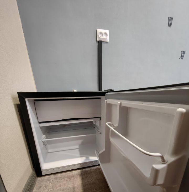 Светлая, чистая комната, новый диван, маленький холодильник, небольшой пенал. Общая стиральная машина, чистые места общего пользования.