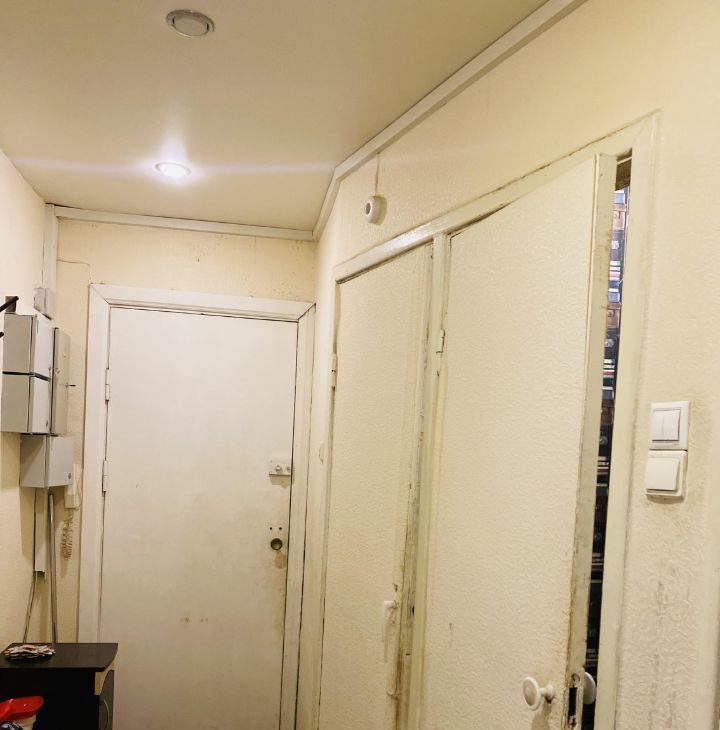выровняны стены, гардероная, окна выходят в тихий двор.
