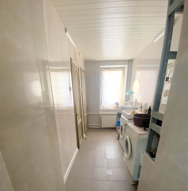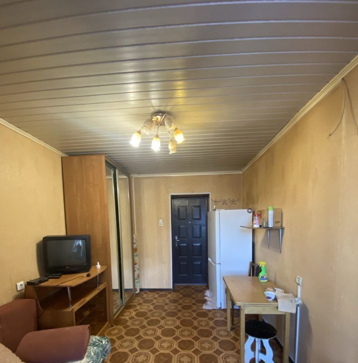 В комнате есть диван, холодильник, вместительный шкаф с зеркалом, обеденный стол, тумба для телевизора,. Комната с застекленным балконом, стиральная машина и свое место на кухне.