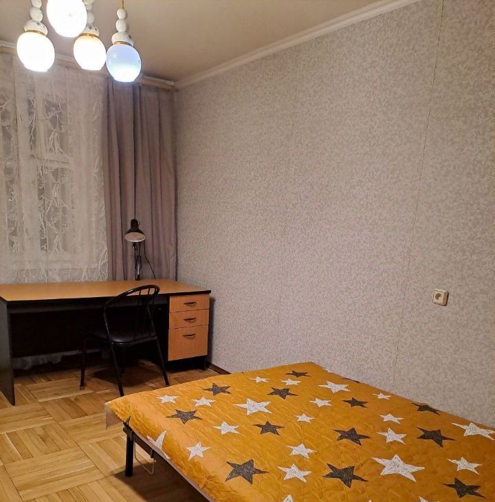В квартире сделан ремонт. Много современной мебели. В вашей комнате новая кровать (( 140 на 200) с матрасом и места для хранения - 2 застекленных шкафа, вешалка для одежды, большой письменный стол , тумба.