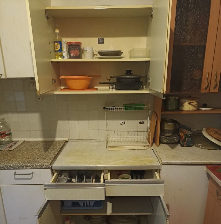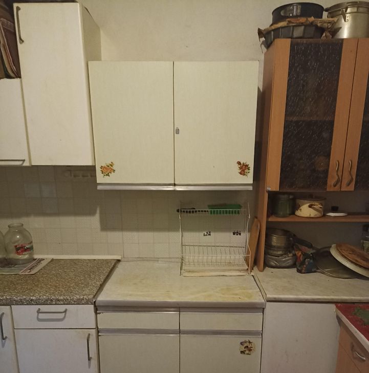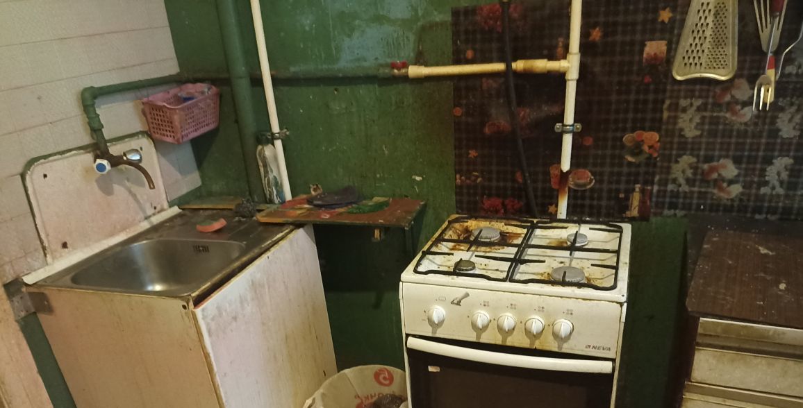 Кухня (место общ. пользования) с газовой плитой. Есть отдельный стол и полка с кухонной утварью. Места общего пользования в относительно удовлетворительном состоянии. В коридоре общий отдельный туалет и ванная комната.
