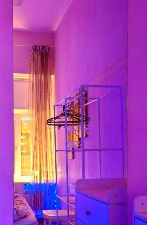 - в комнате также есть вместительный комод, стеллаж для одежды, стол, стул, две лампы, полутораспальная кровать, подоконник, на котором можно сидеть, блэкаут жалюзи и ргб лента!