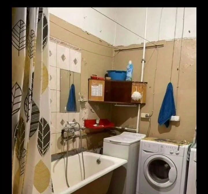 Комната теплая,есть всё необходимое для жизни; холодильник, стол, шкаф, двухспальная кровать, стиральная машина.