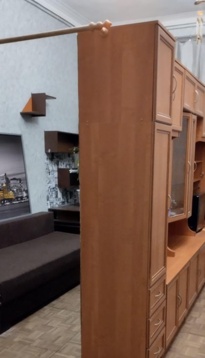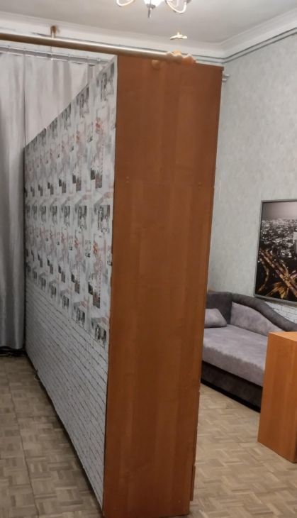 Сдается просторная комната, разделанная на 2 половины мебельной стенкой. в комнате есть все необходимое - 2 спальных места, холодильник, стол, места хранения. Стиральная машина и стол для приготовления еды и душевая кабина на кухне. Квартира малонаселенная, живёт 3 семьи. Комната в ближайшее время будет выставлена на продажу, возможны просмотры. Будем рады жильцам с детьми, с животными, гражданам СНГ