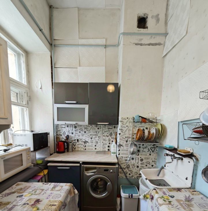 В квартире всего 3 комнаты. Очень мало соседей по меркам коммуналок. Общие кухня, ванна, коридор чистые и аккуратные.