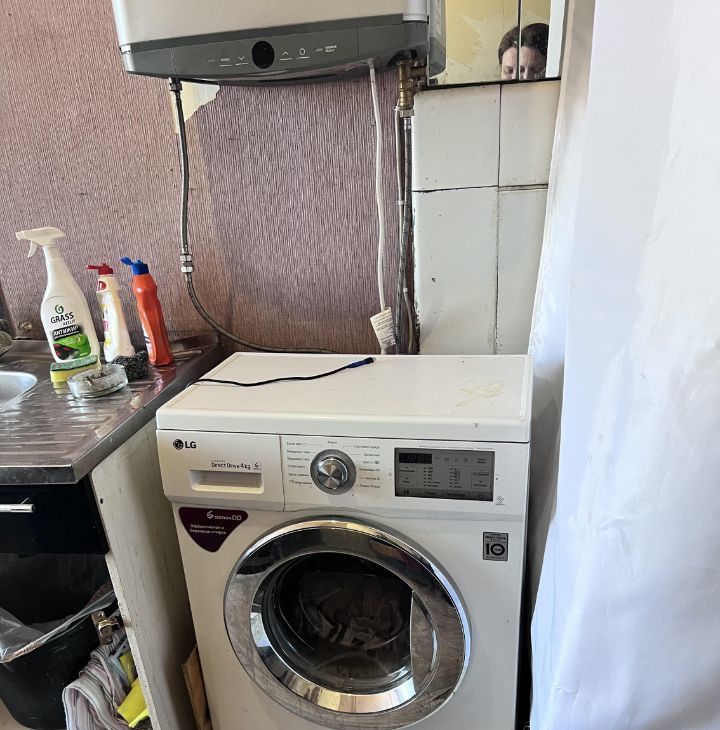 техника ( холодильник, стиральная машинка, плита, бойлер ), и мебель ( двуспальная кровать , шкаф, обеденная группа, прихожая ).