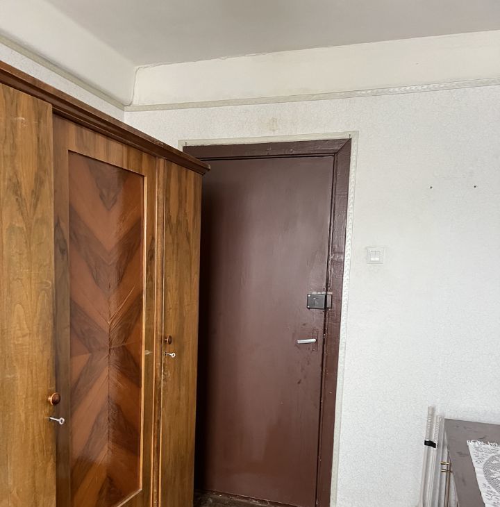 Из мебели в комнате шкаф и тумба, спальных мест нет.