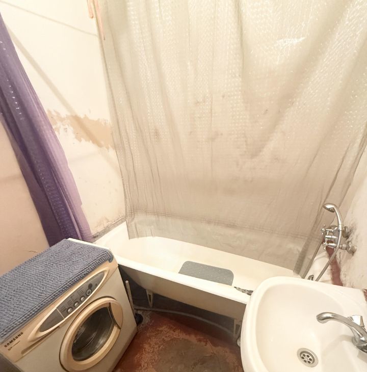 Стиральная машинка отдельная, стоит в ванне, холодильник в комнате.