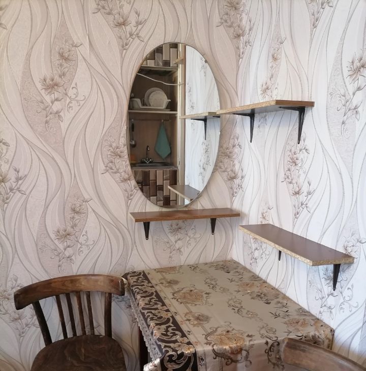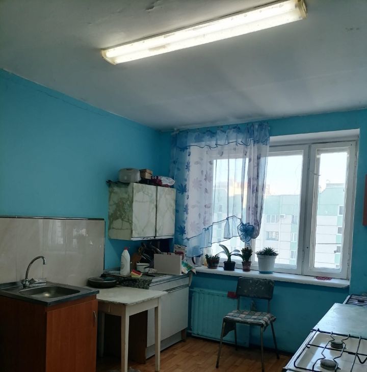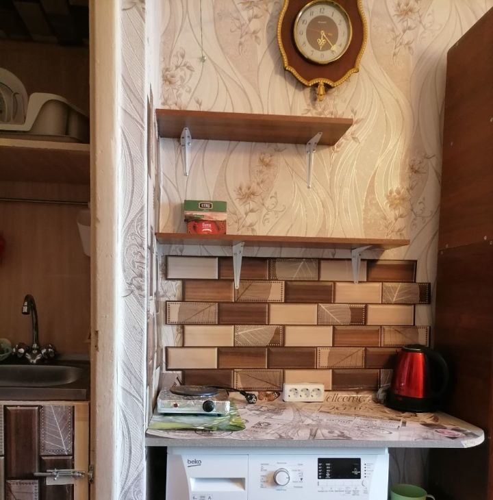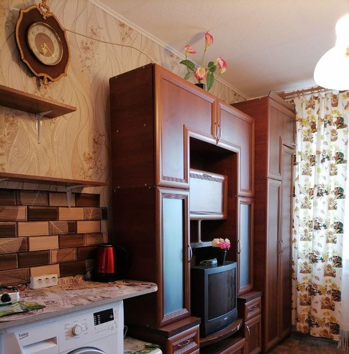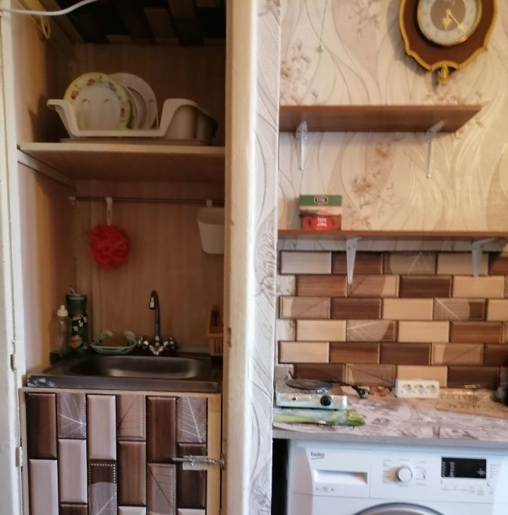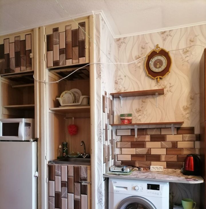 В комнате установлена новая металлическая дверь. Новая тахта. Холодильник микроволновка стиральная машинка телевизор стенка плита чайник. В комнату проведена вода (горячая и холодная),есть раковина. За стенкой душ и туалет.