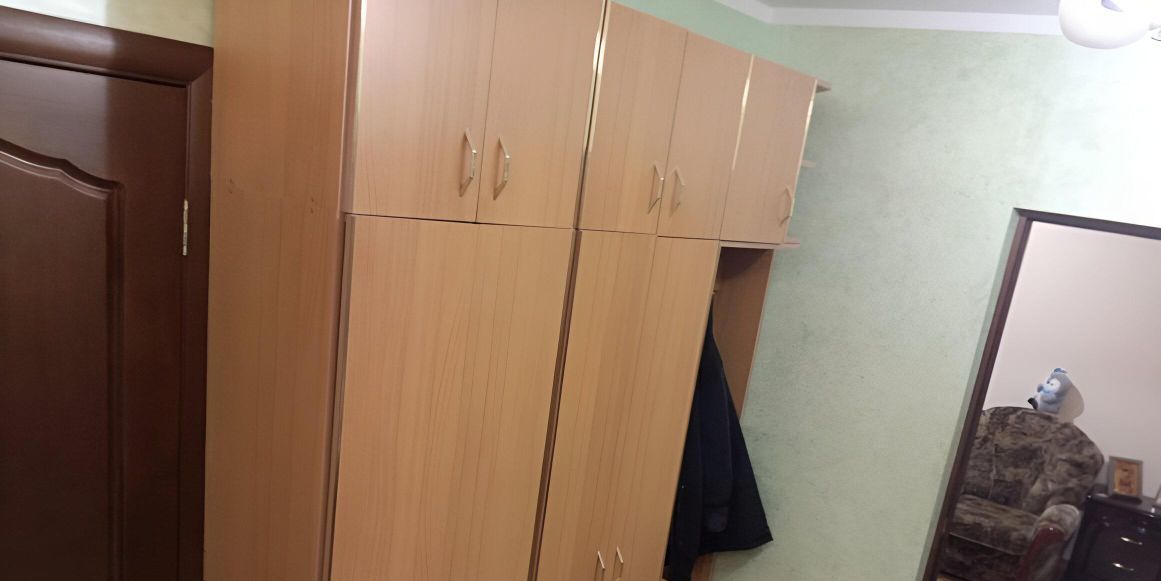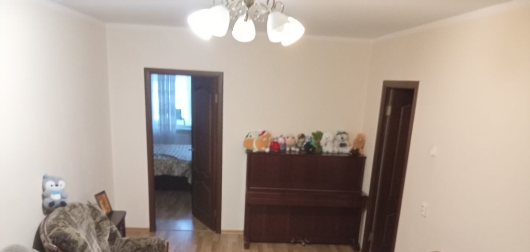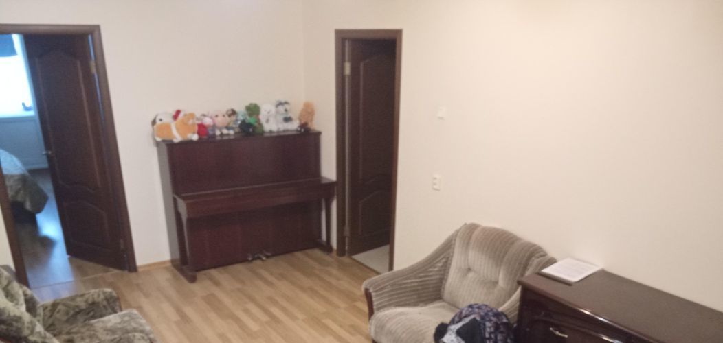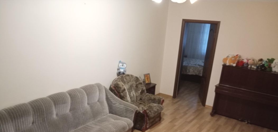 1) в одной комнате-(см. фото комната с диваном и двумя креслами)-гостиная проходная, в ней проживает одна молодая девушка 22 лет.