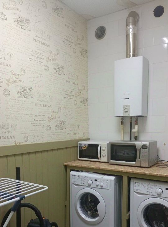 Полностью оснащенная кухня и общая зона: сушилки, стиральные машины.