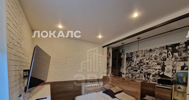 В комнате сделан качественный ремонт в стиле лофт. В наличии все необходимое для комфортного проживания: удобный раскладной диван, вместительный шкаф-купе, рабочий стол, барная стойка, множество мест для хранения вещей и посуды, холодильник, кулер для воды, микроволновая печь, стиральная машина, интернет и огромный телевизор.