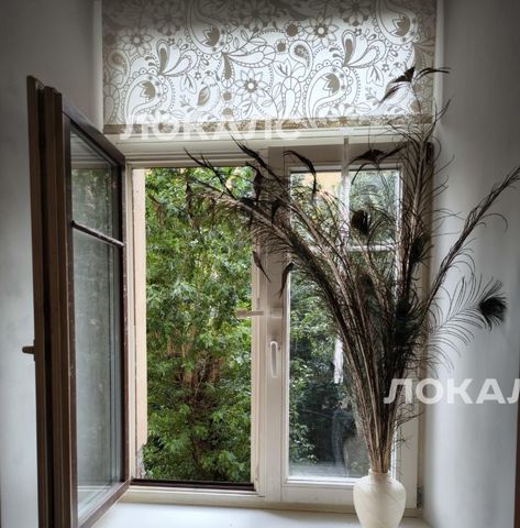 Окно выходит в очень зелёный уютный дворик (не колодец).