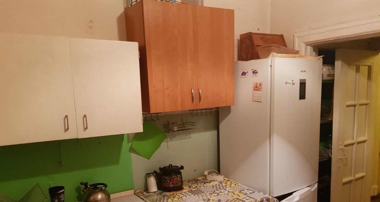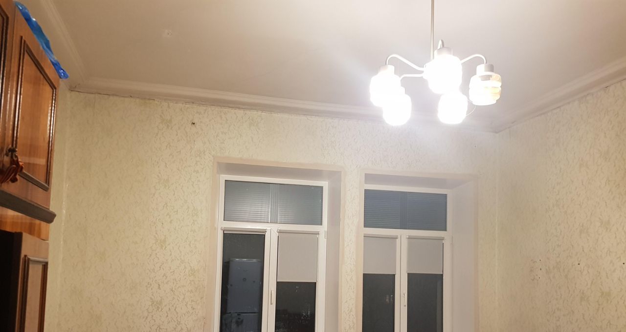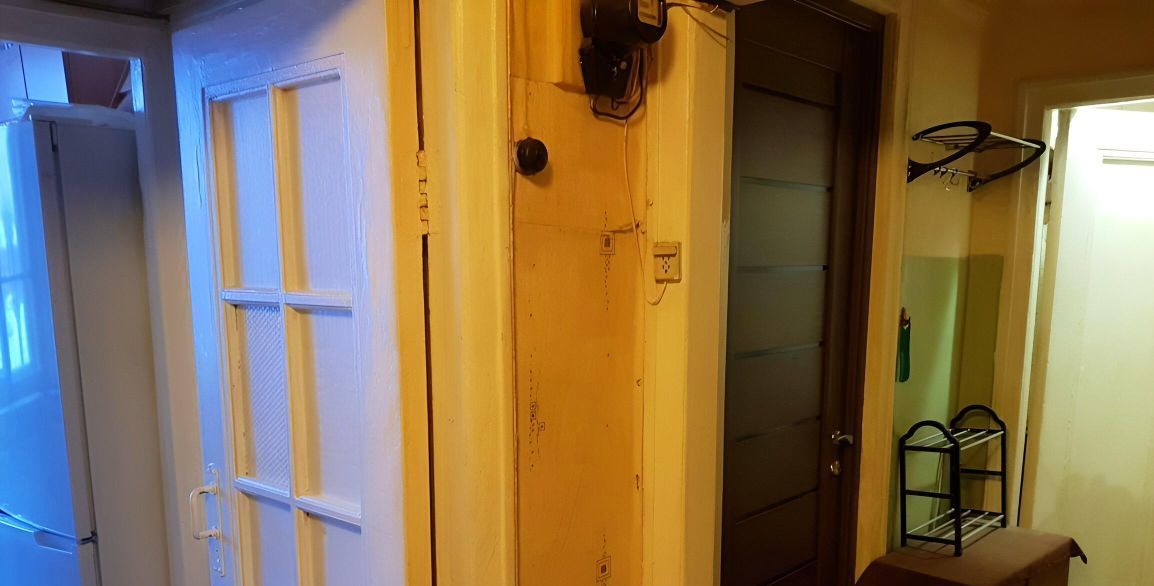Квартира без ремонта, бытовая техника и мебель не новые, дом без лифта, сосед у себя в комнате курит.