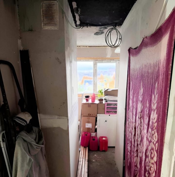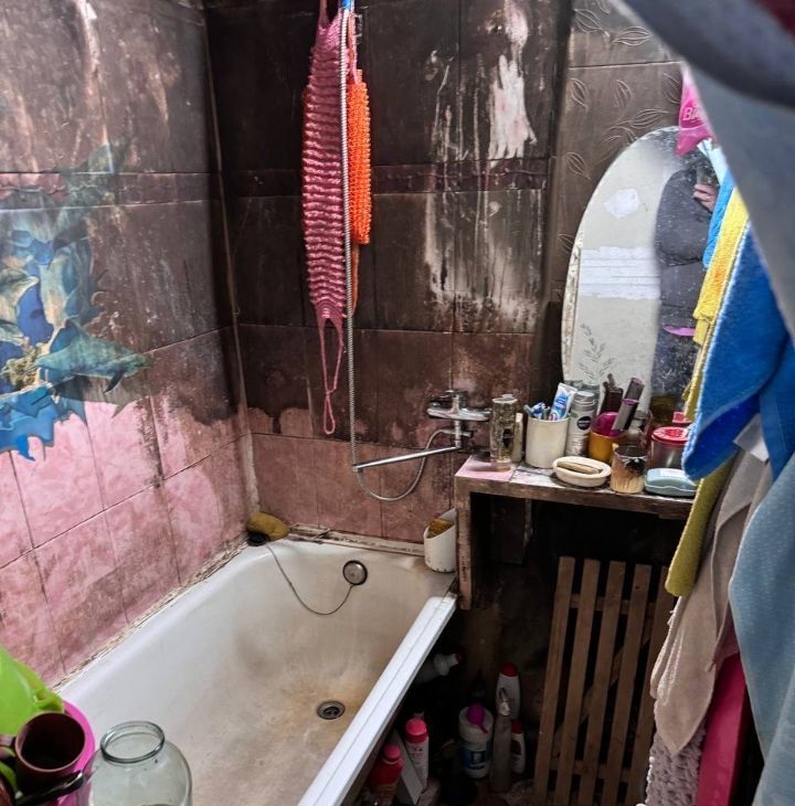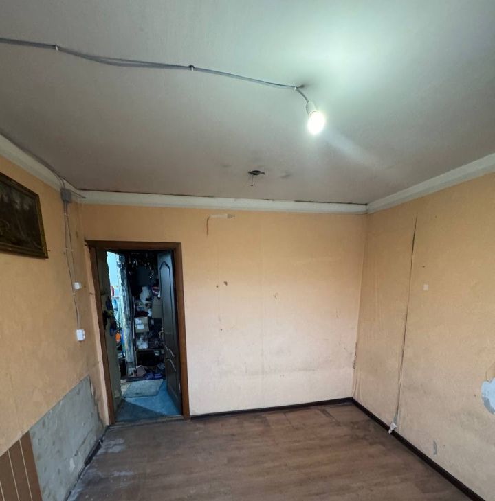 Комната требует косметического ремонта (по желанию). Мебель и техника отсутствует, можно обсудить предметы мебели частично в счёт аренды. Свет есть, но нужно подключить электрокабель в распред. коробку (выведен). Отдельной кухни нет, помещение используется под складирование вещей соседей. Раздельный санузел.