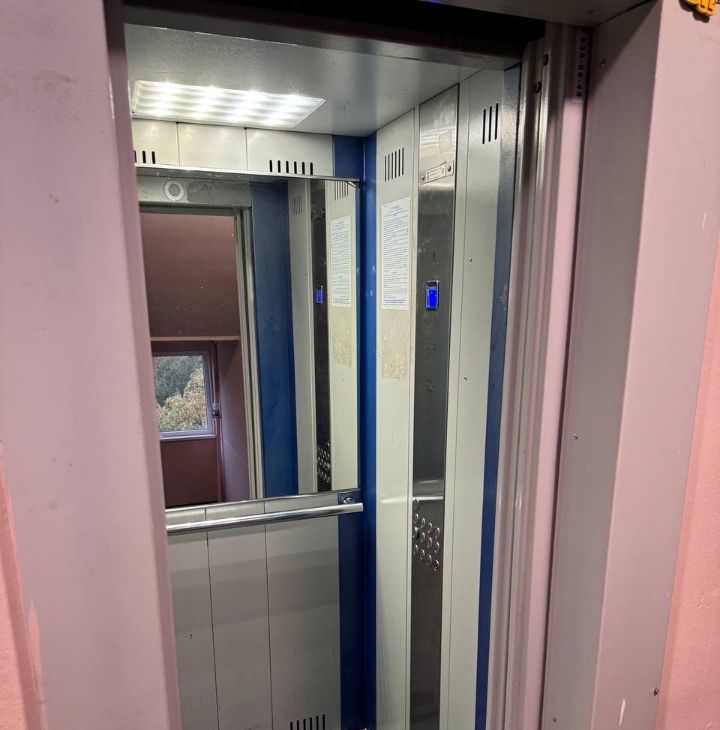 Лестничная клетка в хорошем состоянии, современный лифт.